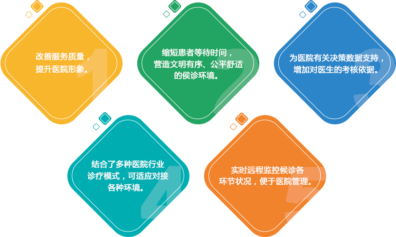 有无HIS系统的医院、挂号处、护士站均可实现对接;支持高清显示器、大屏幕、电视墙等多种显示设备,显示视频、文字及排队信息;可完成排序、叫号等诸多功能;诊断终端可实现护士登记工作站对患者的管理和医生在线呼叫诊断;管理终端也可通过远程监控实时了解候诊中的各环节情况。